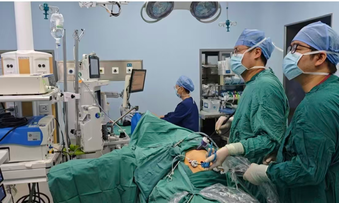 手术过程中,主刀医师胡永军和黄峰发现情况比术前预测更为复杂:由于器官严重移位,正常解剖结构不复存在,手术区域极其狭窄。轻微的缺乏会损害周围重要的血管和器官。手术团队冷静应对,依靠准确的解剖识别和轻柔细腻的操作手法,小心分离组织粘连,逐渐显露出病变胆囊。
